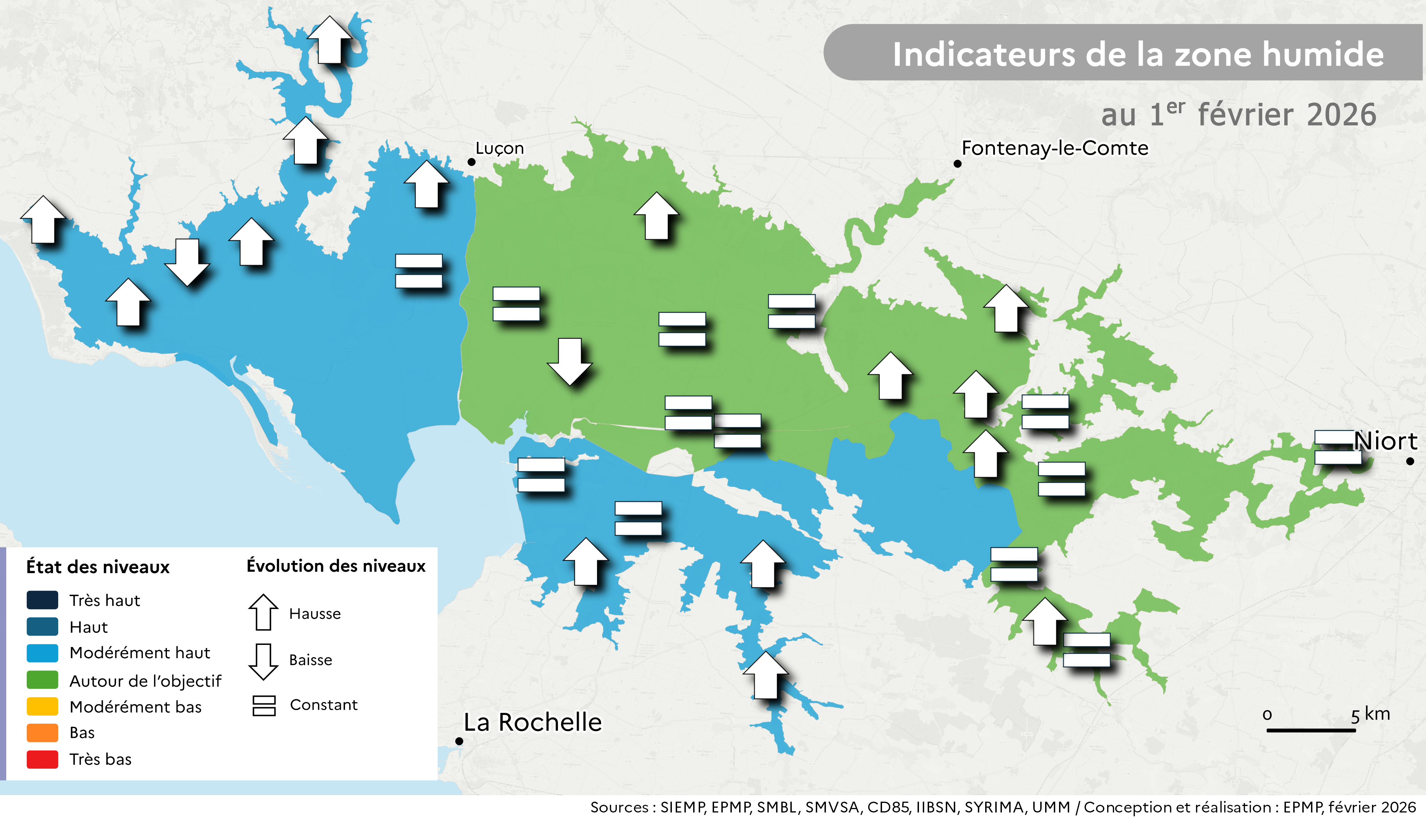 Concernant la zone humide, les niveaux constatés sont proches ou au dessus des fuseaux de gestion.