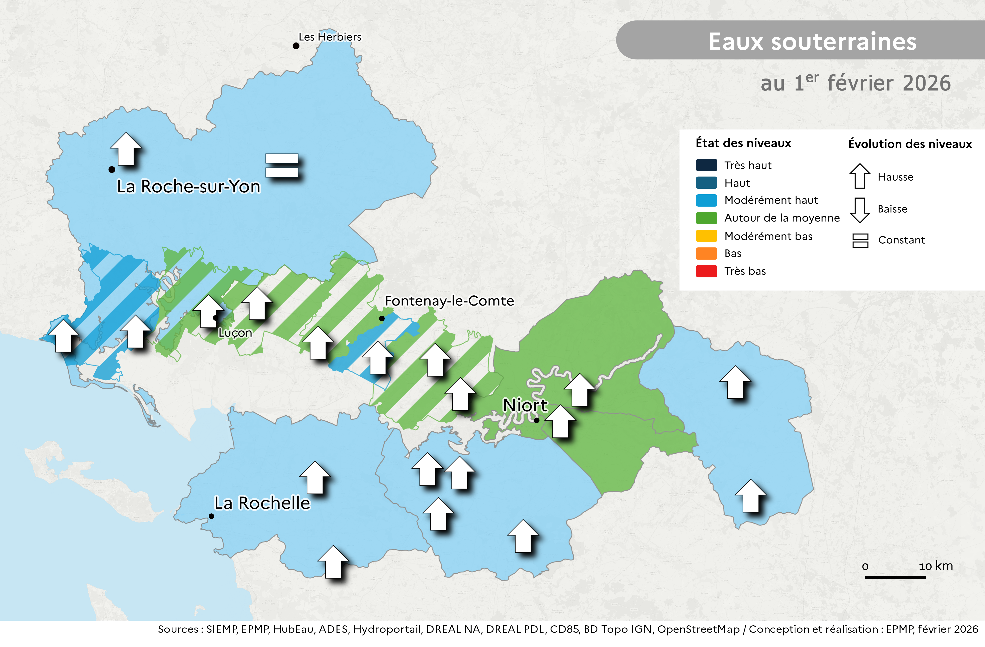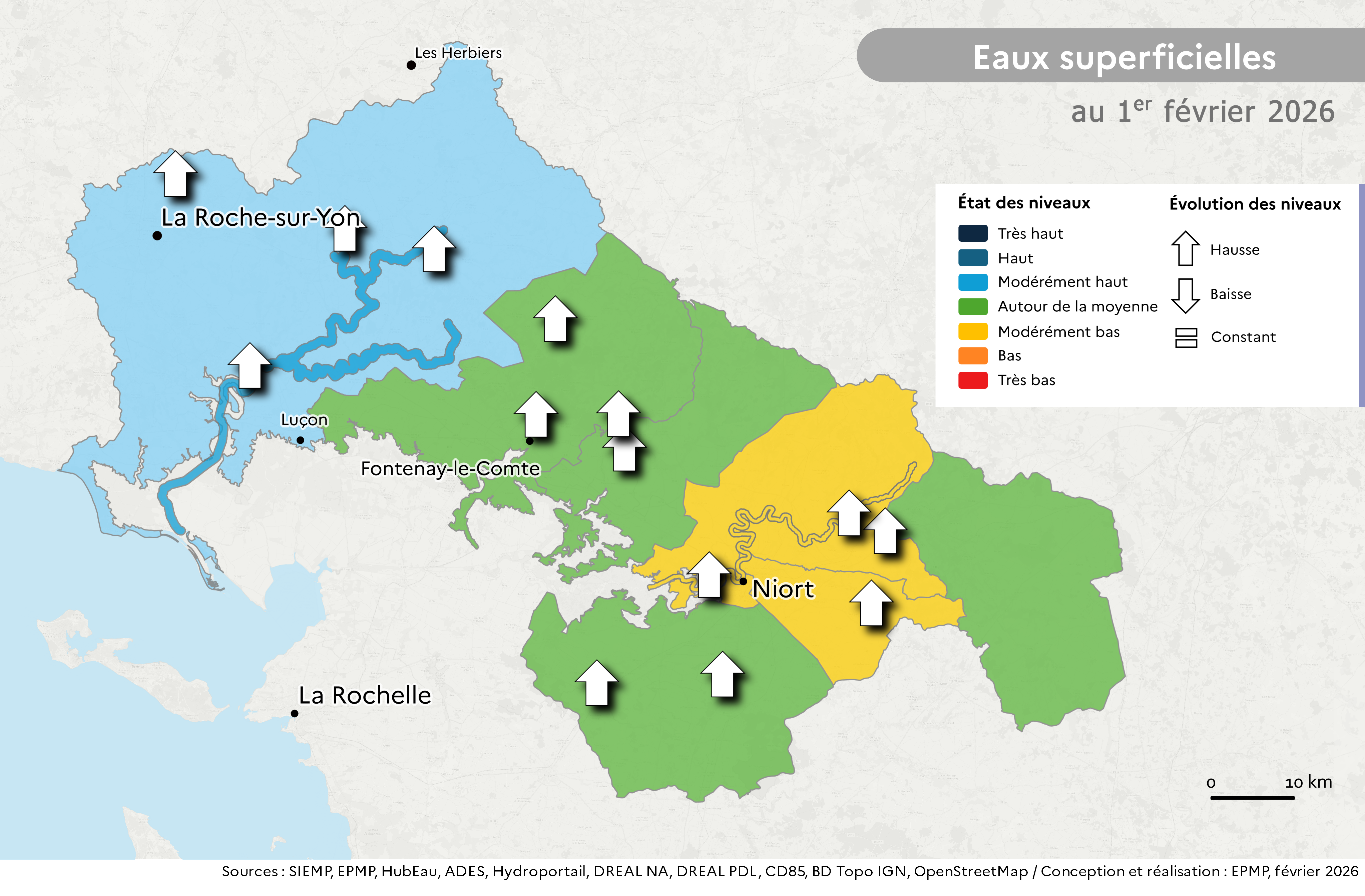 La situation des nappes et des cours d'eaux est très favorable au premier février. Les pluies excédentaires entre le 07 et le 31 janvier ont permis une importante remontée des niveaux de nappe et des cours d'eau.