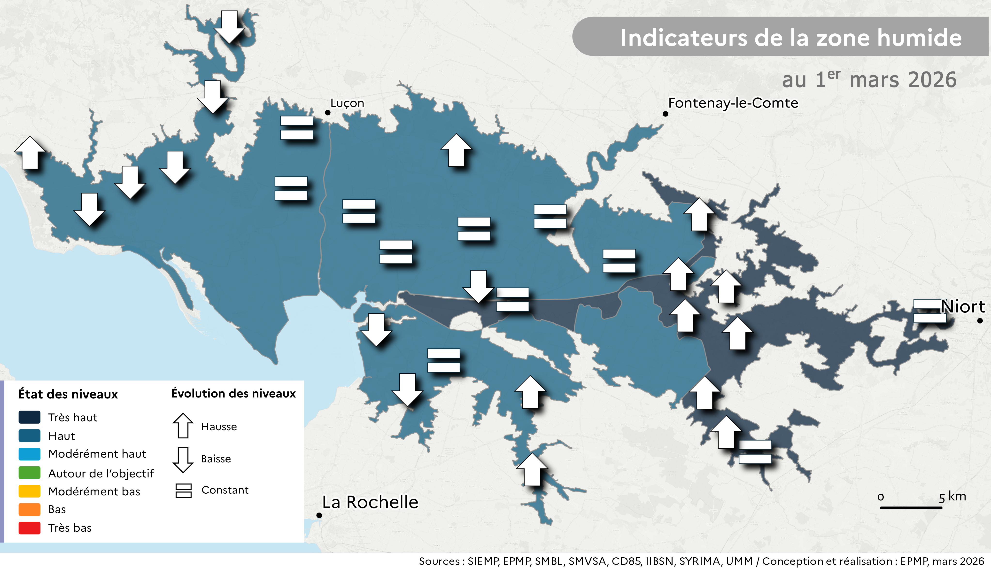 Concernant la zone humide, les niveaux moyens sur le mois sont très hauts, en revanche, en fin de mois, l'évacuation trop brutale de certains secteurs a fait plongé les niveaux.