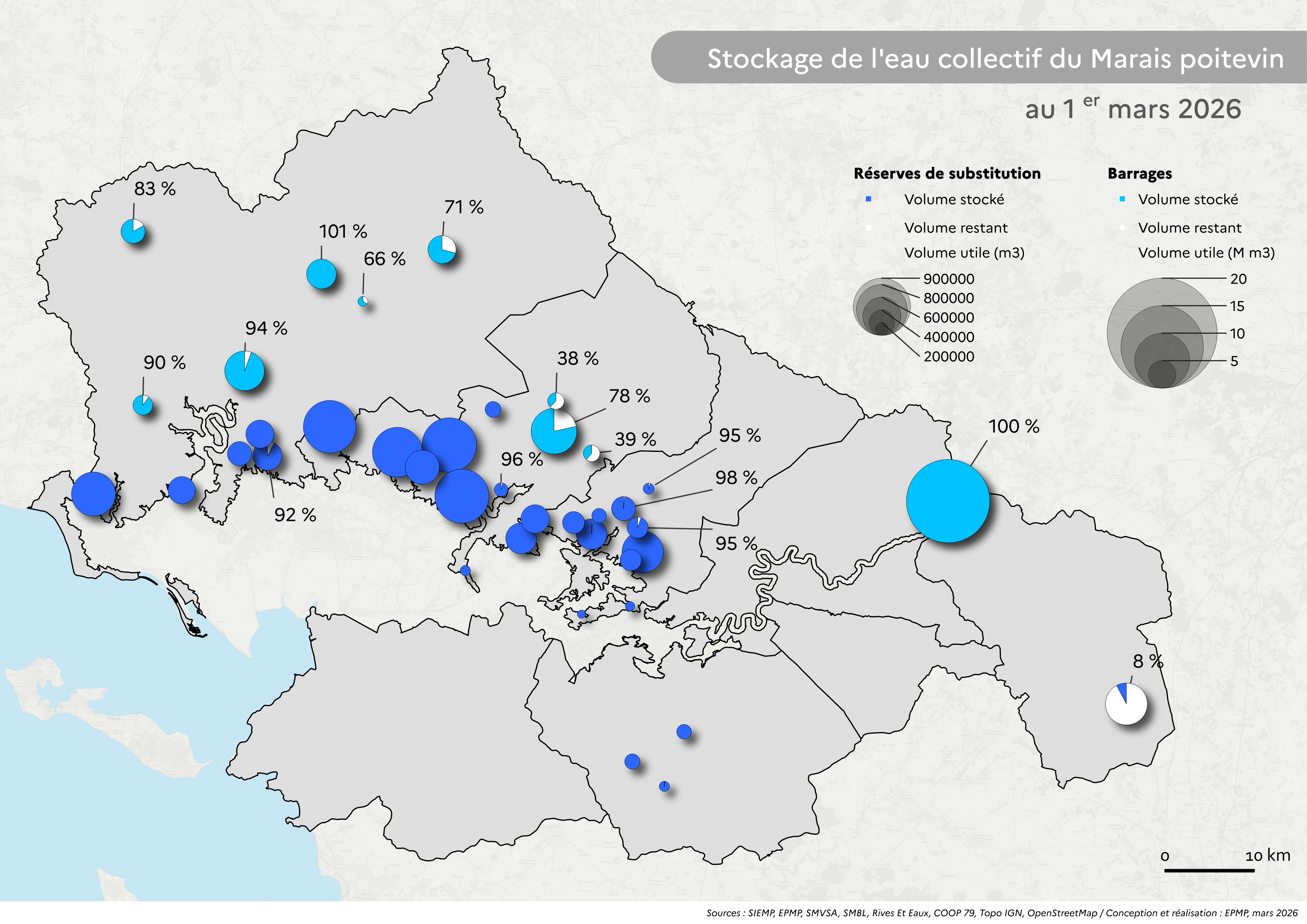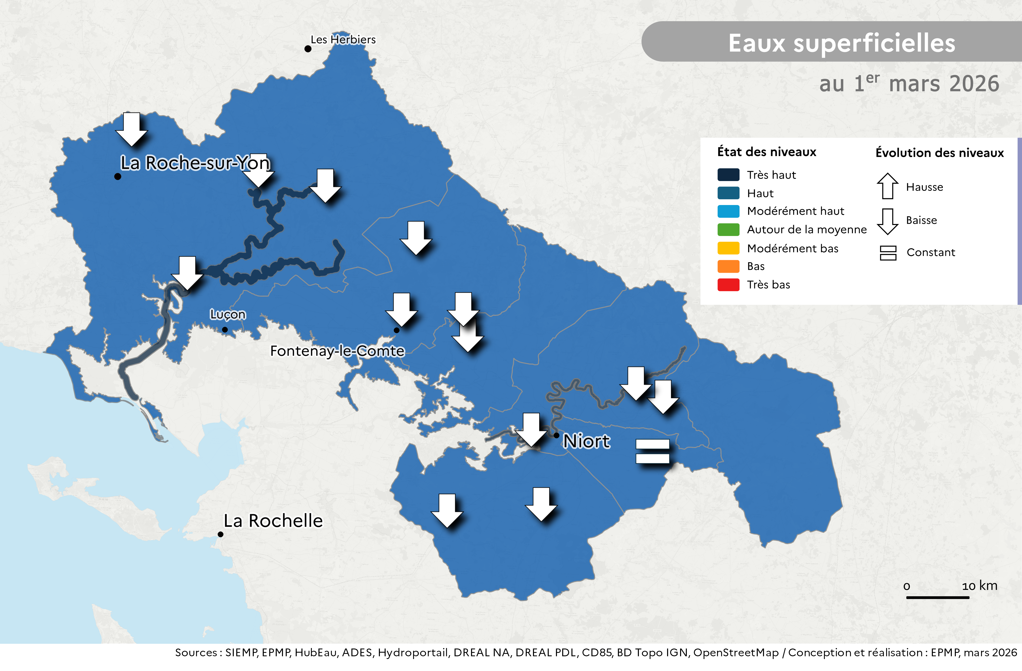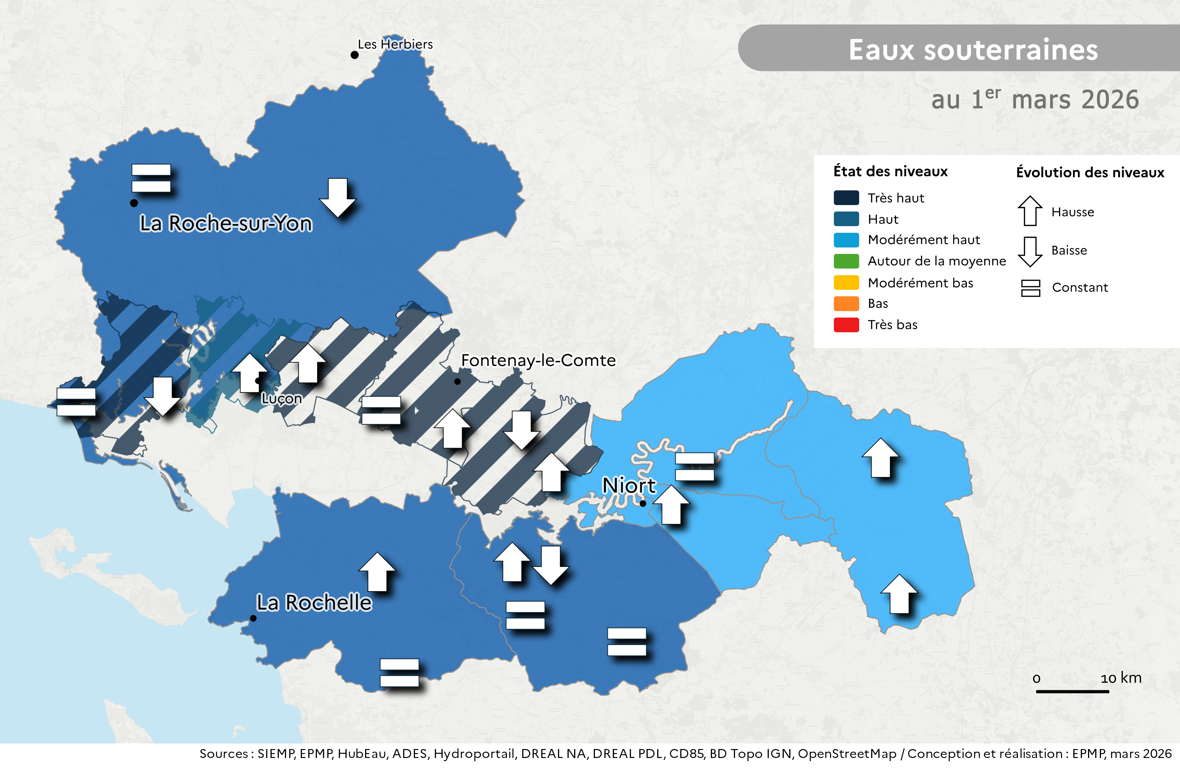 Début mars, la plupart des secteurs cultivés en Vendée sont en dessous des fuseaux de gestion.