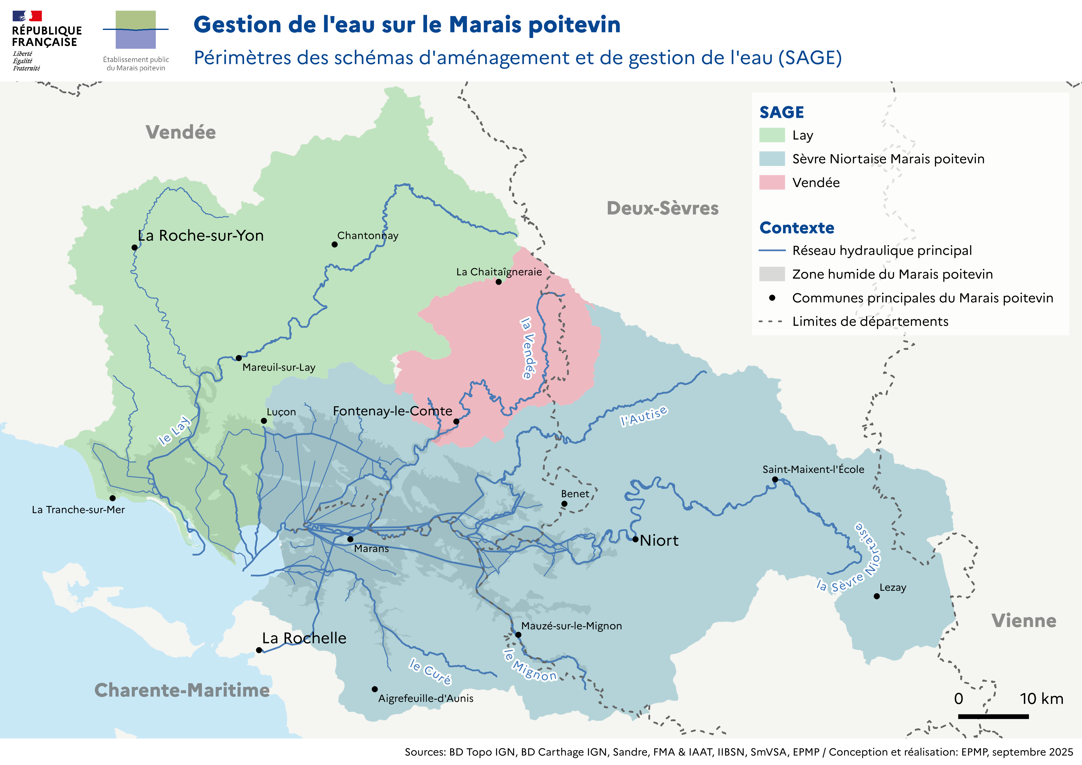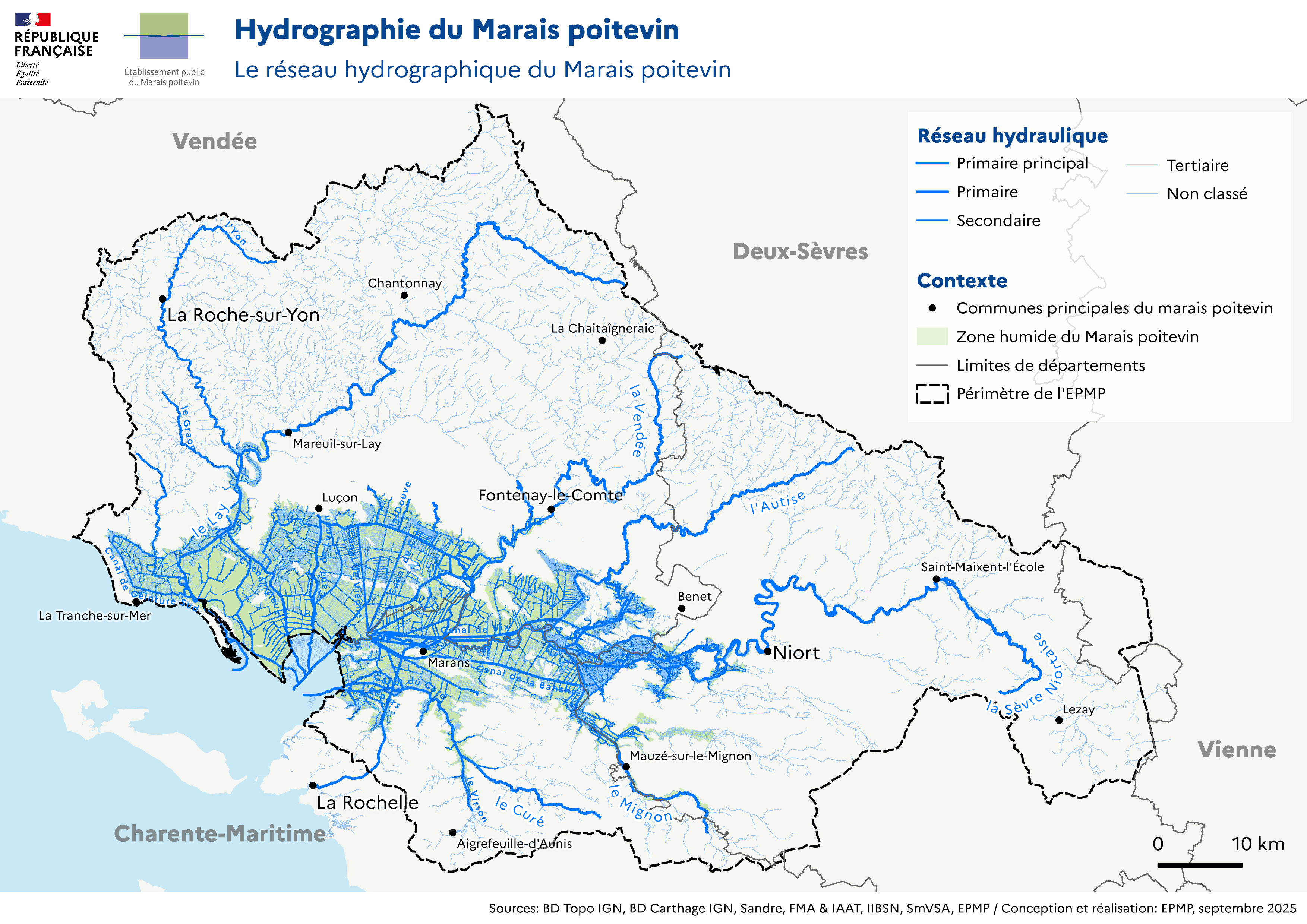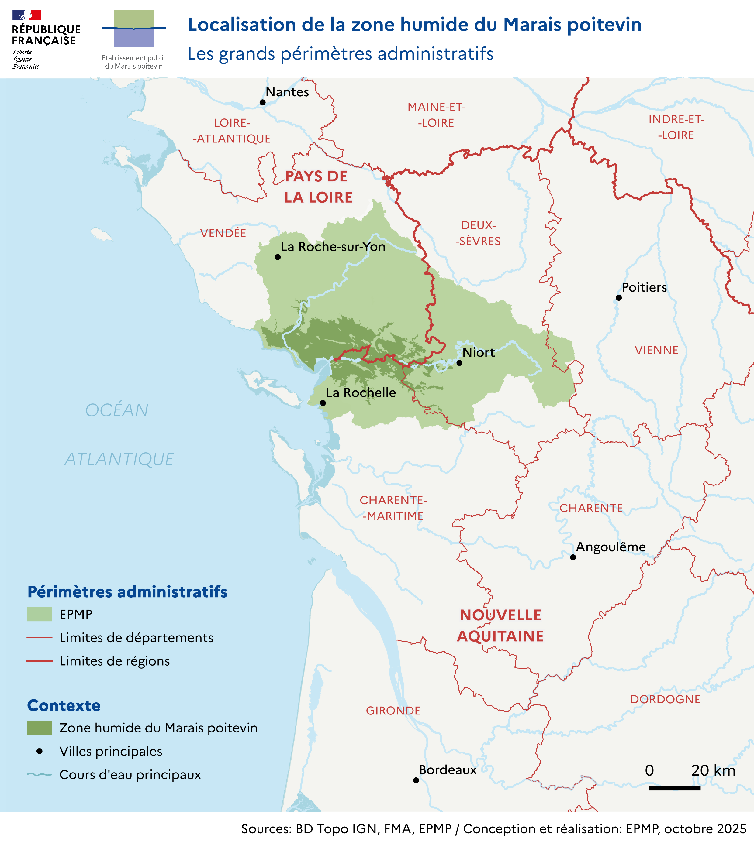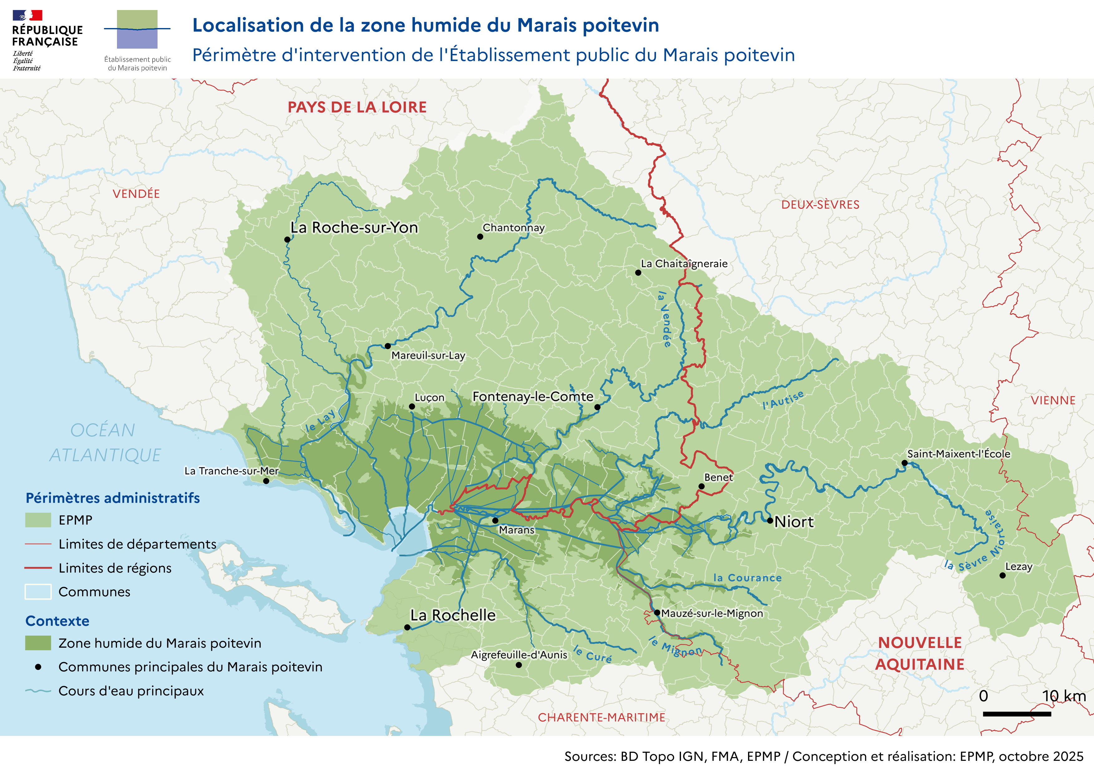Sur cette page, vous pourrez trouver des cartes sur différentes thématiques à l’échelle de l’EPMP ou de la zone humide du Marais poitevin. Vous pouvez les récupérer en ouvrant l’image et en cliquant sur « enregistrer l’image sous ».